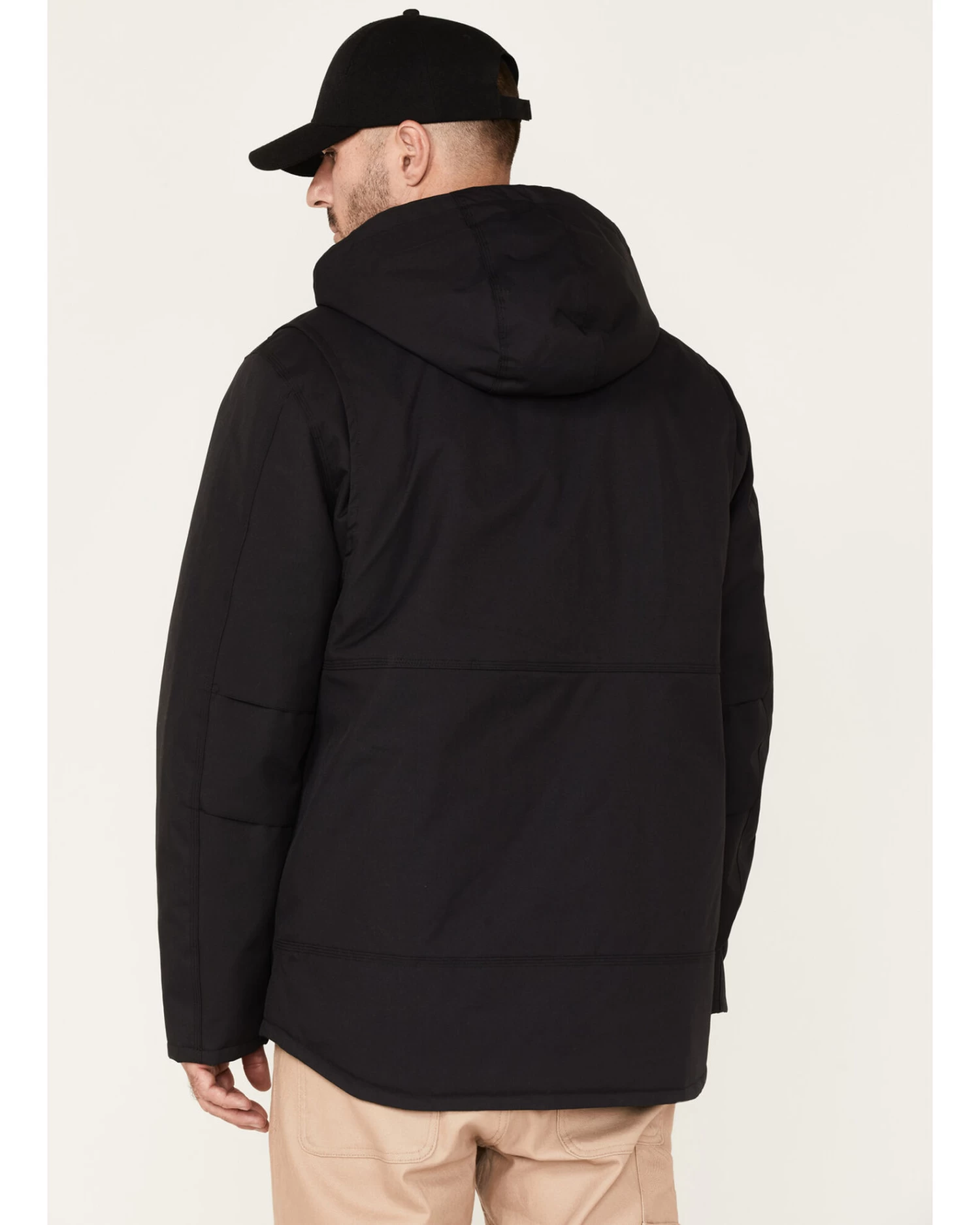 - Attached hood with adjustable drawstrings