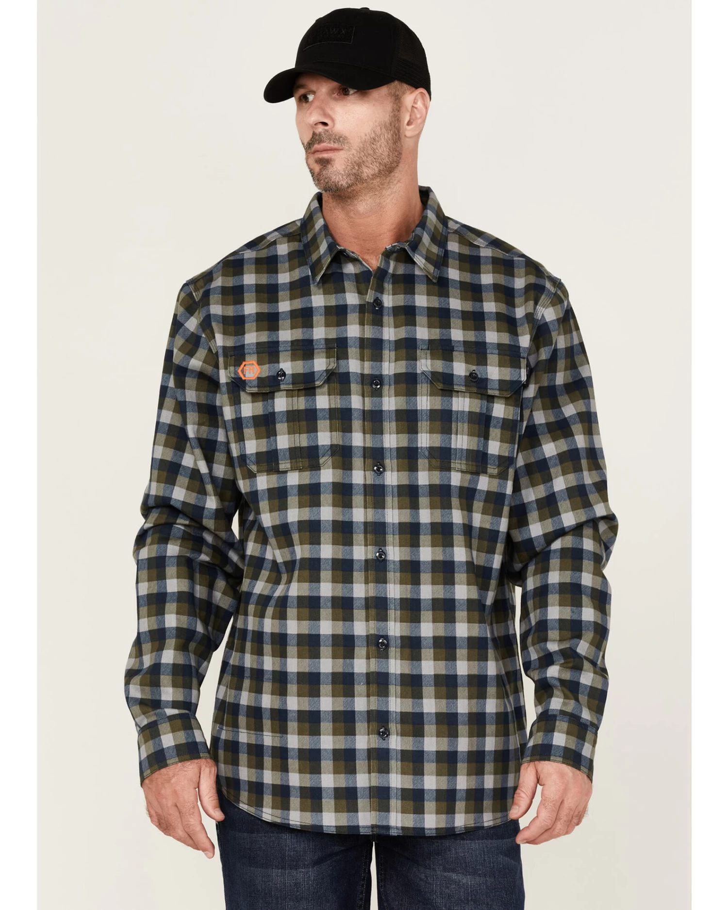 Hawx Men’s FR Plaid Print Long Sleeve Button Down Work ShirtÂ
