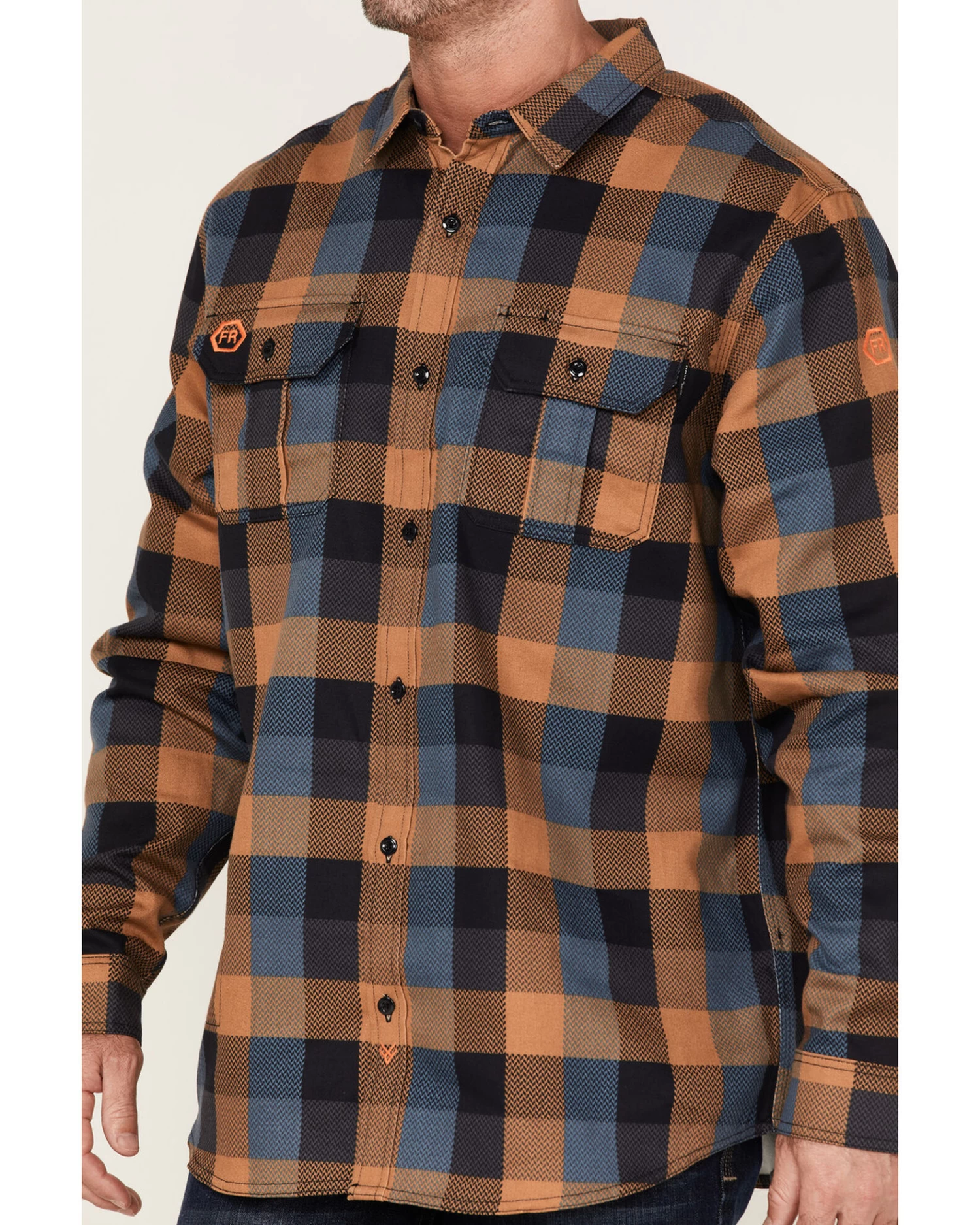 Hawx Men’s FR Plaid Print Long Sleeve Button Down Work Shirt